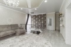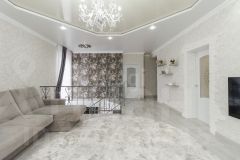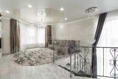 Элегантная винтовая лестница с коваными перилами ведет на второй этаж, где вас ждет светлая гостиная площадью 30 м² и две просторные спальни около 15 м² каждая. Здесь также находится современный санузел с душевой кабиной и теплым полом, что создаст атмосферу уюта и комфорта.