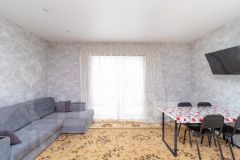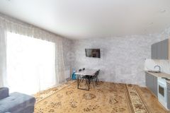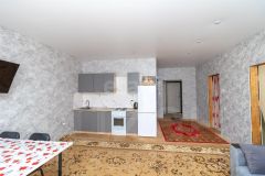 В доме большая кухня-гостиная. Здесь установлено панорамное окно для выхода на террасу.