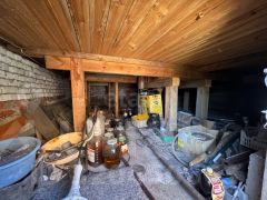 Земельный участок 6,95 сотки, огорожен со всех сторон, расположен дом 90 м2 с мансардой на высоком фундаменте. Дом выполнен из бруса, на первом этаже две комнаты, кухня, просторная входная группа, лоджия с гардеробной, второй этаж большая комната, балкон. Высокий цокольный этаж для хранения инвентаря, бакалеи. Отопление печное, водоснабжение колодец, электричество заведено в дом, туалет на улице. Жаркая баня с большой летней кухней, установлен водонагреватель, стиральная машина, заведена вода со скважины.