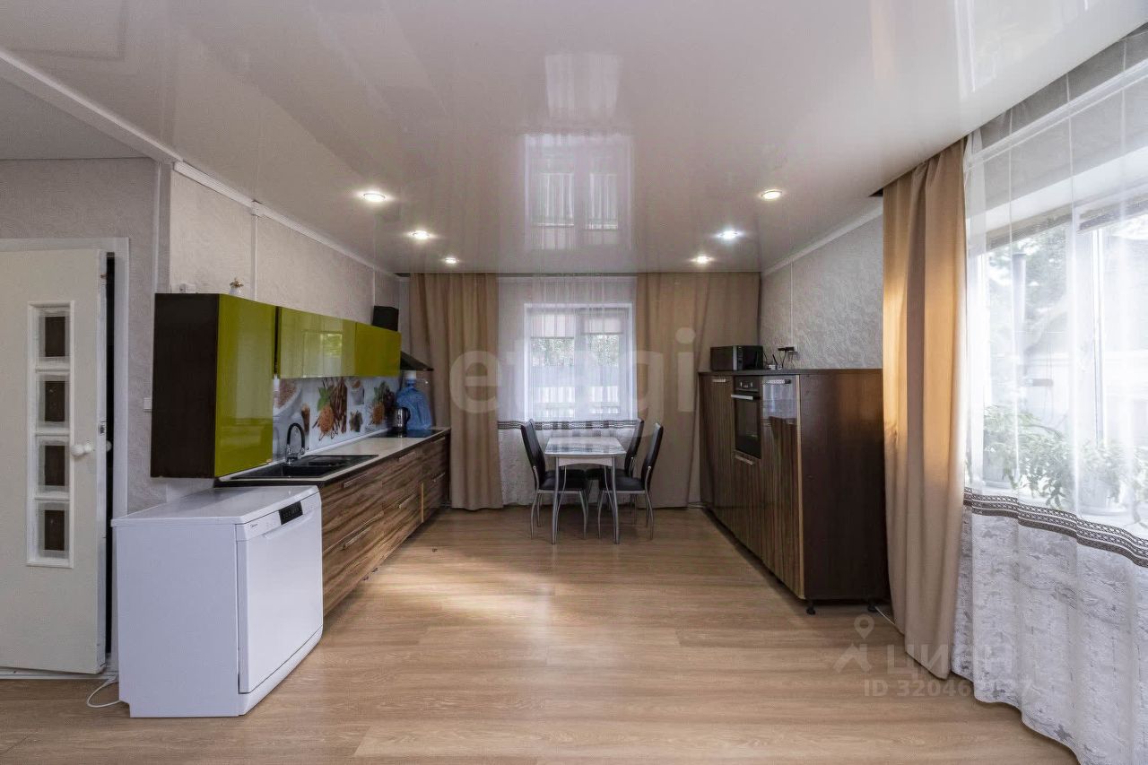 Кухня, выполненная с любовью, остается в подарок новым владельцам и оснащена качественной техникой. Удобные доводчики Блюм делают использование кухонного гарнитура еще более приятным. Пол первого этажа покрыт ламинатом, а на втором этаже — коммерческим линолеумом, что обеспечивает долговечность и легкость в уходе. Натяжные потолки добавляют современный штрих в интерьер.