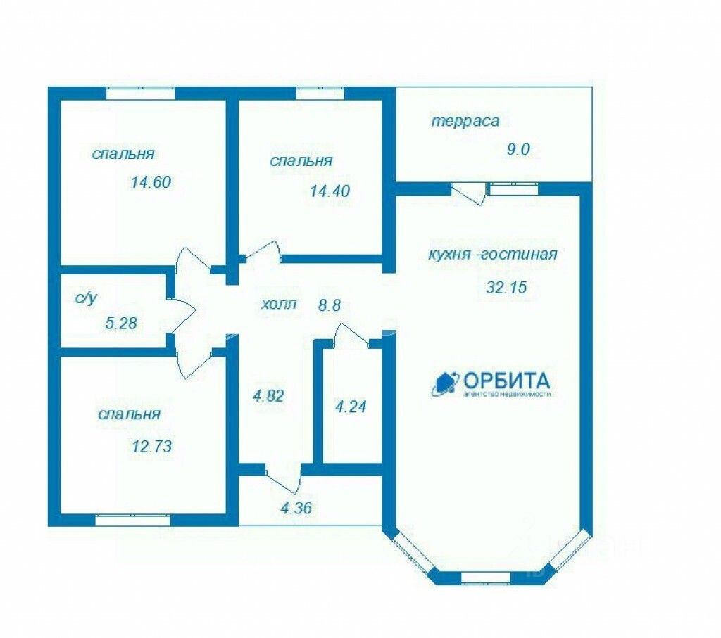 3 уютные спальни по 14 м² достаточно места для всей семьи.
