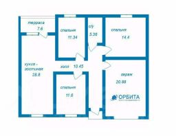 Кухня-гостиная 28,8 м² с выходом на террасу 7,6 м² (идеально для семейных ужинов и приема гостей).