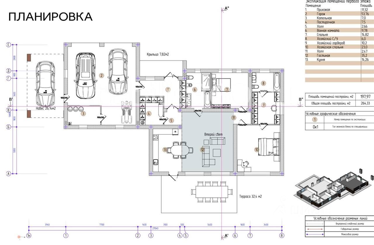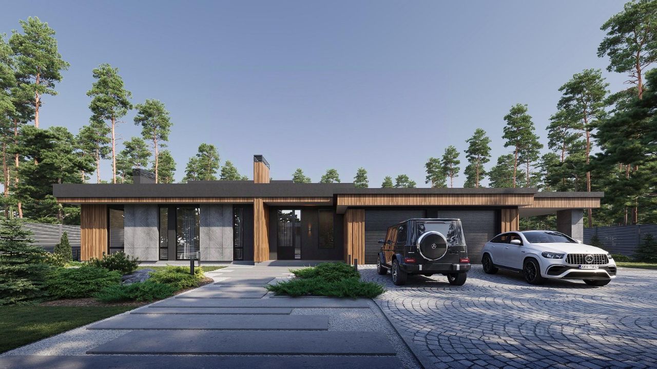 Одноэтажный готовый дом в черновой отделке площадью 265 м².