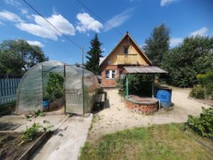 Участок прямоугольной формы, площадью 5.6 соток. Полностью огороженный со всех сторон. На участке расположен дом, баня, хоз. постройка, летний душ, уличный туалет, зона для отдыха.