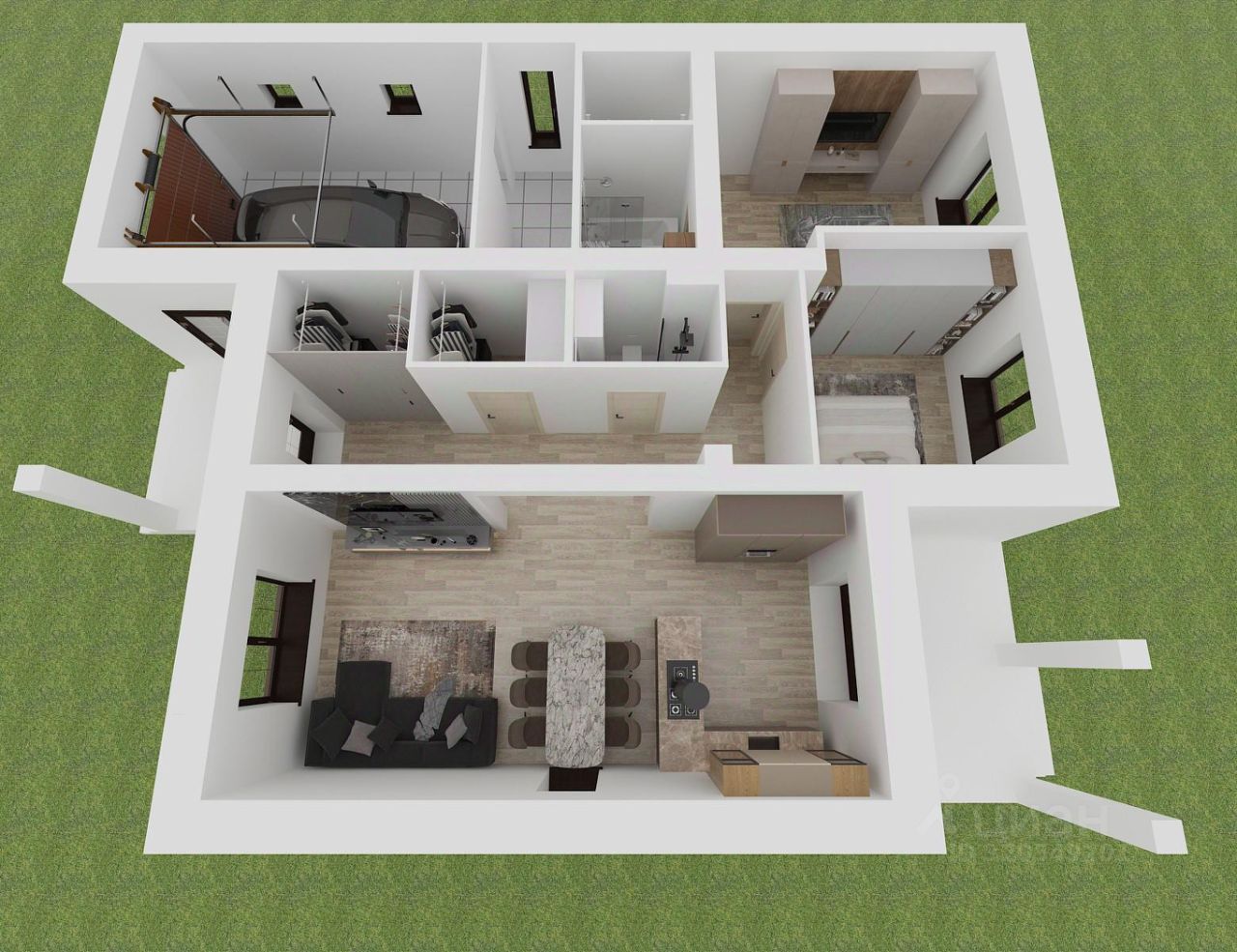 Планировка дома 2+, продумана до мельчайших деталей, удобна и практична. В доме гармонично расположатся: кухня-гостиная с выходом на террасу, 2 спальных комнаты, одна из которых является мастер-спальней, гардеробная, прачечная комната, 2 санузла.