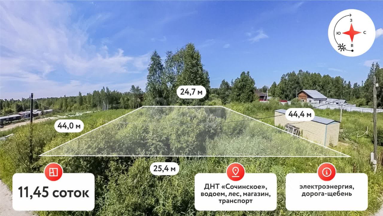 Уважаемые покупатели! Уникальная возможность для тех, кто мечтает о собственном уголке природы! СРОЧНАЯ ПРОДАЖА земельного участка площадью 11.4 сотки в живописном ДНТ "Сочинское", всего в 10-15 минутах езды от города! Этот участок — идеальный выбор для строительства вашего будущего дома, где вы сможете наслаждаться спокойствием и уединением вдали от городской суеты. Участок имеет правильную форму, не огорожен и уже обработан, что позволяет вам сразу приступить к реализации своих планов. Здесь нет проблем с затоплением — это место идеально подходит для комфортной жизни. Дороги в обществе широкие и твердые, а главная улица покрыта щебнем и асфальтной срезкой, что обеспечивает легкий доступ в любое время года. Удобства на территории включают продуктовые магазины , также открылась торговая сеть " Монетка", пост охраны и систему видеонаблюдения, что гарантирует безопасность и комфорт. Электричество уже подведено, что значительно упрощает процесс подключения. Вокруг участка раскинулся смешанный лес и множество живописных озер, идеальных для летнего отдыха и рыбалки. Для семей с детьми предусмотрен школьный автобус, а также регулярно курсирует рейсовый автобус 129, что делает это место еще более привлекательным для постоянного проживания. Не упустите шанс стать владельцем этого замечательного участка! Звоните прямо сейчас, и я с радостью организую для вас показ в удобное время!