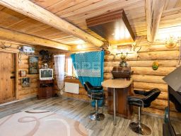 Экологичный Оазис: Стены из натурального кругляка дышат, создавая уникальный микроклимат и неповторимую аутентичную атмосферу. Стильный и "атмосферный" ремонт подчеркивает красоту дерева и создает ощущение тепла и уюта.