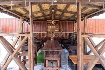 Летнее Наслаждение: Просторная веранда из бруса (летняя кухня) и отдельная практичная летняя кухня идеальные площадки для утреннего кофе и летних обедов на свежем воздухе.