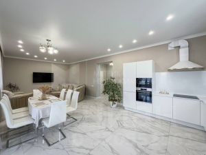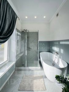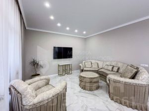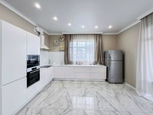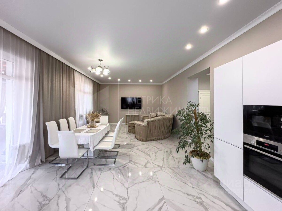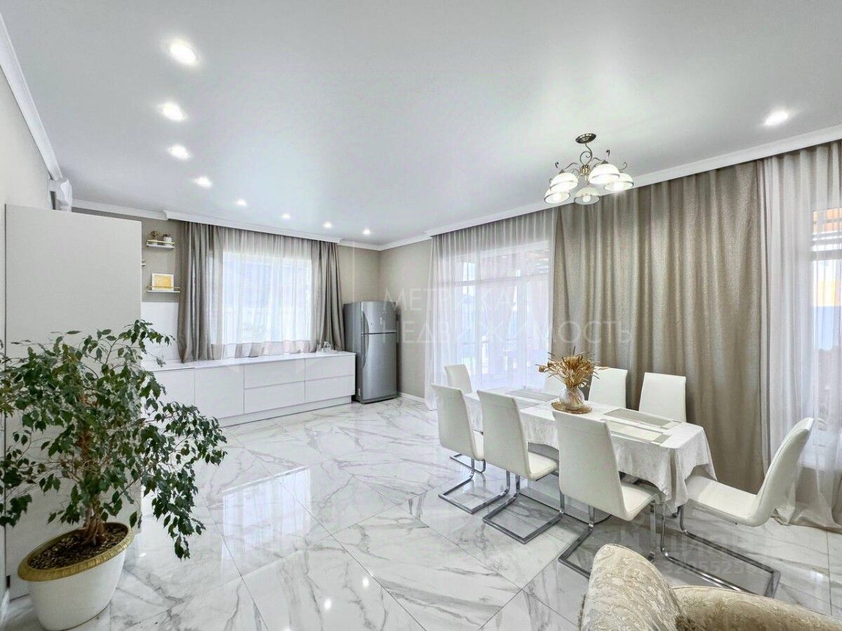 Функциональная планировка включает большую кухню-гостиную 50 кв.м., кабинет, террасу 30 кв.м. и 4 спальни на втором этаже. Высота потолков 3 м. дает ощущение свободы. Все коммуникации, газ, электричество и подогреваемая скважина.