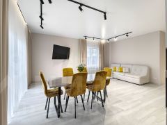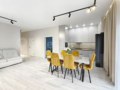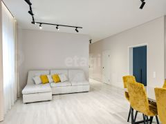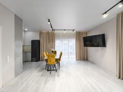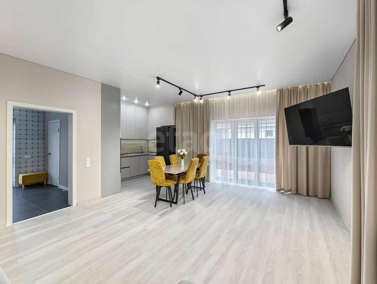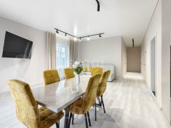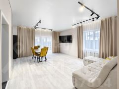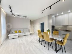 Ремонт выполнен в современном стиле с вниманием к деталям: керамогранит на полу, ровные стены в нейтральных тонах, высокие потолки. Вся мебель и техника остаются новым собственникам. Коммуникации полностью подведены: электричество, газовое отопление, автономная система водоснабжения (скважина) и канализации (септик).
