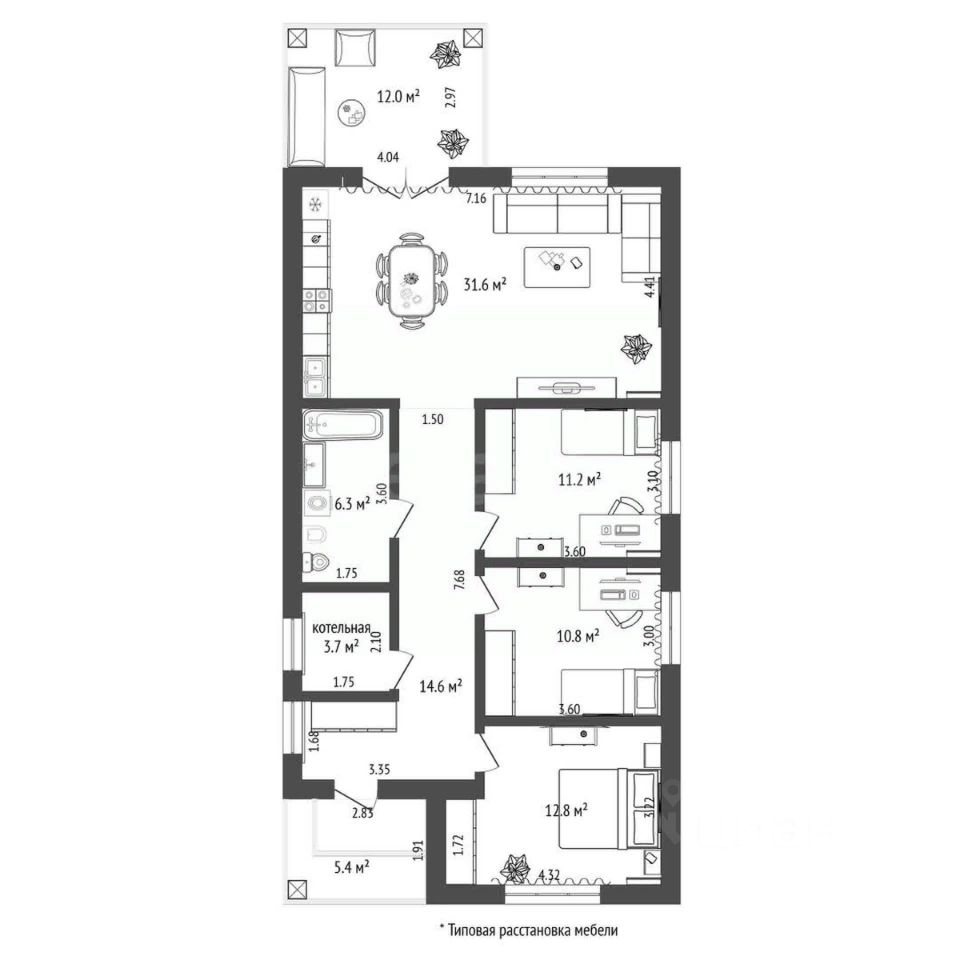 - Высота потолка - 3 метра.