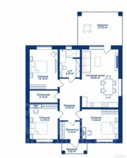Большая кухня-гостиная (30,8 м²) с выходом на террасу