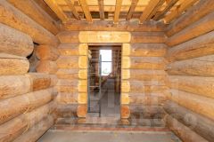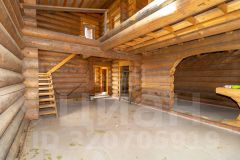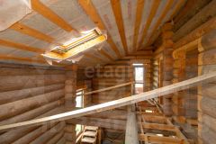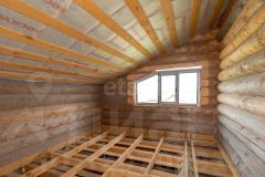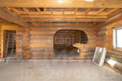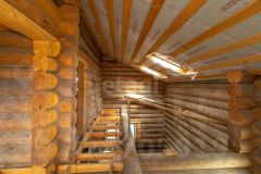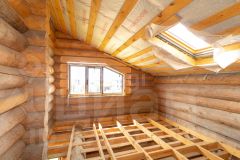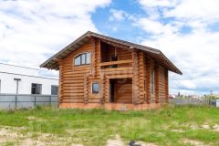 Дом площадью 125 м² из бревна диаметром 38 мм сочетает надежность, энергоэффективность и продуманную планировку. Нижние венцы выполнены из лиственницы, устойчивой к влаге, верхние — из ели с высокими теплоизоляционными свойствами, что снижает затраты на отопление. Конструкция установлена на 37 сваях длиной 6 метров с ленточным фундаментом, обеспечивающим устойчивость. Кровля из финского материала "Катэпал" гарантирует долговечность и защиту от осадков. Технология рубки — русская в чашу с лунным пазом, выполненная мастерами из Перми, что подчеркивает качество обработки древесины.