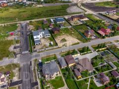 Планировка включает первый этаж с прихожей, просторной гардеробной, санузлом, кухней и гостиной со вторым светом, создающей ощущение простора. На втором этаже расположены две изолированные комнаты, подходящие для спален или кабинета. Два мансардных окна с возможностью установки автоматических жалюзи обеспечивают естественное освещение и регулировку светового потока. Участок можно расширить на 10 соток за счет смежной территории, что увеличивает потенциал для ландшафтного дизайна или хозяйственных построек.