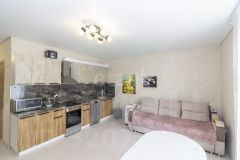 Просторная кухня-гостиная с встроенным кухонным гарнитуром, электроплитой и посудомоечной машиной.Две изолированные комнаты — идеально подходят для отдыха или работы.Большой совмещённый санузел с современными удобствами.Забор с откатными воротами обеспечивает безопасность и приватность участка.По всему периметру выполнена отмостка для защиты фундамента.