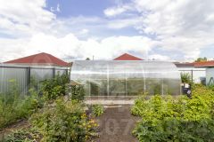 Теплица размером 3х6 метров и хозяйственный блок для хранения инструментов.Участок отсыпан,