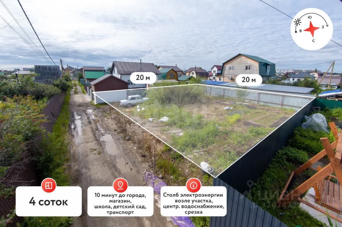 Участок правильной формы 4 сотки, размеры: 20 на 20 метров. Идеально подойдет под дачу или строительство дома.