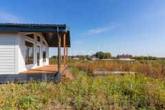 При входе в дом вас встречает просторная гардеробная, а также две светлые комнаты, санузел и большая кухня-гостиная с выходом на террасу, где вы сможете наслаждаться утренним кофе или вечерними посиделками с друзьями на свежем воздухе.