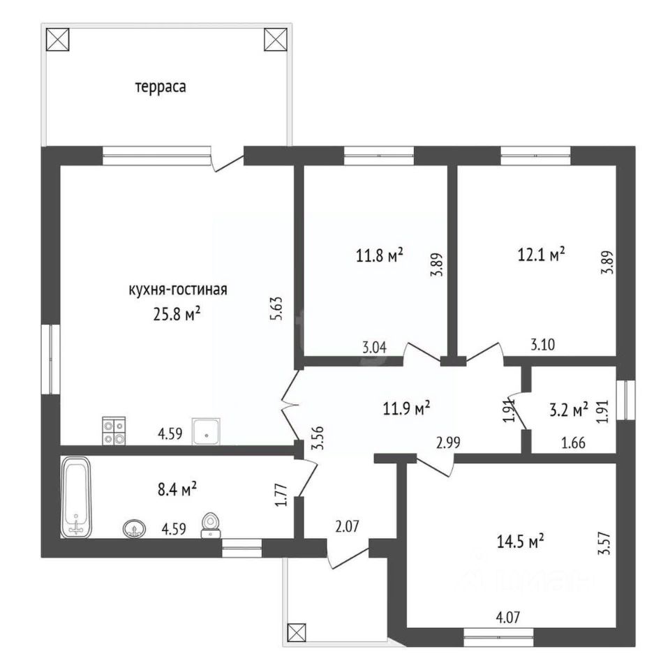 В 10 минутах езды от Тюмени! Популярная планировка 3+