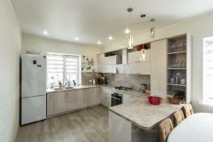 Продается просторный дом площадью 137 кв. м с продуманной планировкой: три спальни, светлая кухня-гостиная с выходом на террасу и совмещенный санузел. На террасе оборудована зона барбекю, что делает ее удобным местом для отдыха в любое время года. Дом построен на монолитной плите, стены из керамзитоблока утеплены пенополистиролом и облицованы керамическим кирпичом, что обеспечивает высокую энергоэффективность. Крыша покрыта металлочерепицей, водоснабжение осуществляется из скважины. В бойлерной установлен газовый котел и система фильтрации воды, гарантирующая комфортное проживание.