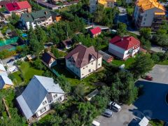 Участок полностью огорожен забором, проведено освещение по периметру, есть видеонаблюдение. Зеленая буферная зона отделяет участок от многоэтажных зданий.