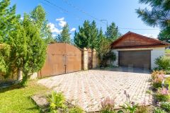 Газобетон, ж/б ленточный фундамент, внутренняя отделка: штукатурка, крыша: металлочерепица, пол: деревянный, есть погреб, ворота: автоматические, откатные