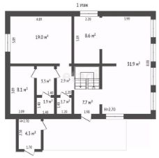 Двухэтажный дом выполнен из бруса, септик - 10кубов, вода - скважина, отопление - электрический котел, на первом этаже - подогреваемые полы, французский камин, на 2 этаже 2 балкона.