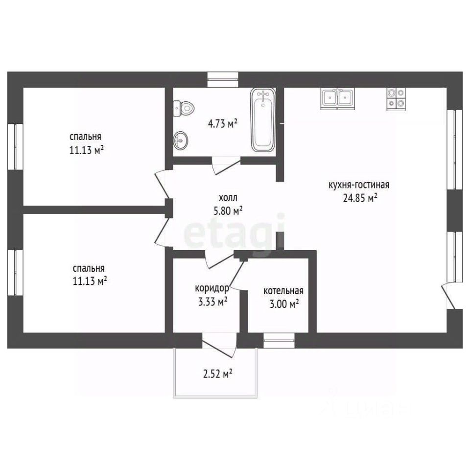 Формат дома 2+ 63м2 большая кухня-гостиная.