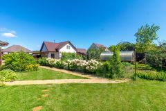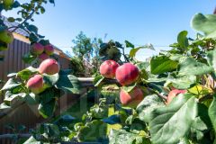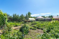* За домом начинается твоя маленькая "вкусная" страна. Аккуратный огород с грядками, где уже высажена клубника и зреют овощи к столу. Яблони и груши свои, самые ароматные фрукты на компот и пироги.