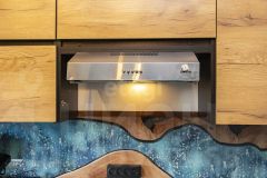 • Дизайнерский кухонный гарнитур, посудомоечная машина, вытяжка и холодильник.