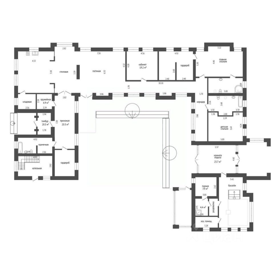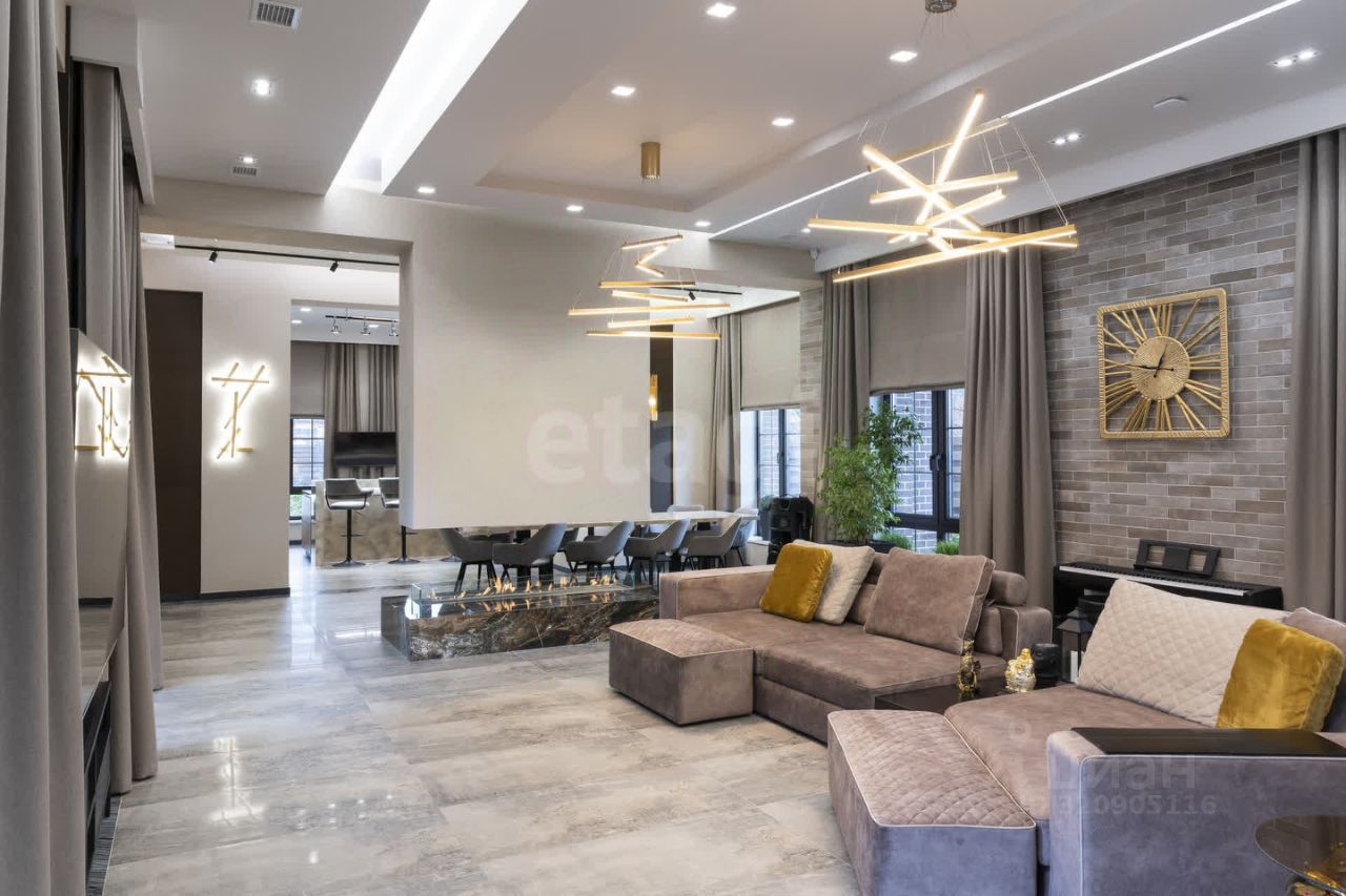 В доме - столовая, гостиная, 3 отдельные спальные комнаты, гардеробные, хоз.комнаты, санузлы, сауна, бассейн и многое другое.
