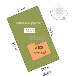 Площадь дома составляет 98,6 кв.м., и включает в себя две уютные комнаты, просторную кухню-гостиную, отдельный тепловой узел, большой санузел и отдельную гардеробную. Участок правильной формы площадью 7,19 соток предоставляет достаточно пространства для реализации ваших идей по благоустройству.