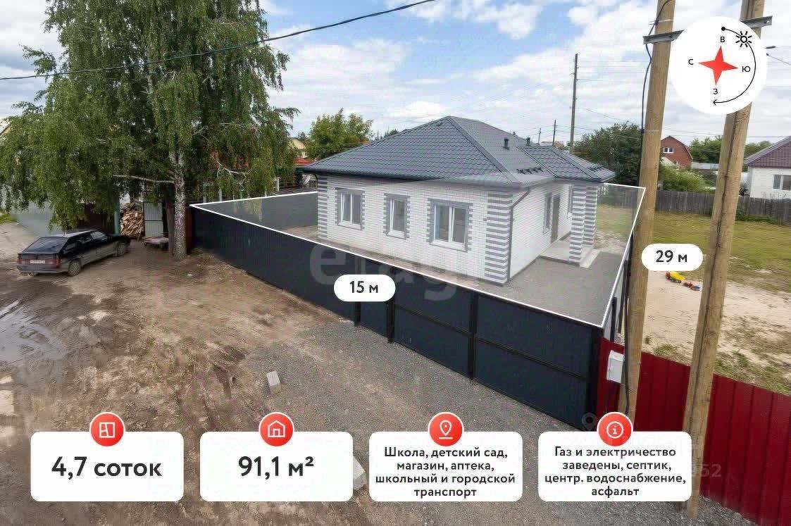 По СЕМЕЙНОЙ ИПОТЕКЕ. Продам новый дом площадью 91.1 кв.м., 2024 года постройки в Тюмени, по цене 2 комнатной квартиры. Находится в Центральном округе города, ул Избышева. До центра города 10 мин. Дом построен из керамзитоблоков, облицовка кирпич. Крыша из металлочерепицы. Имеется септик, разведено электричество и отопление, установлен электро (газовый) котел - в доме тепло. Дом с отличной планировкой для большой семьи: 3 отдельные комнаты, кухня-гостиная, просторный санузел, так же имеется техническое помещение. Дом в улучшенной-черновой отделке, стены выровнены под маяк - можно клеить обои. В шаговой доступности есть магазины, новая школа, детский садик. Звоните, покажем в любое удобное время для Вас!!!
