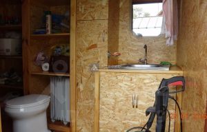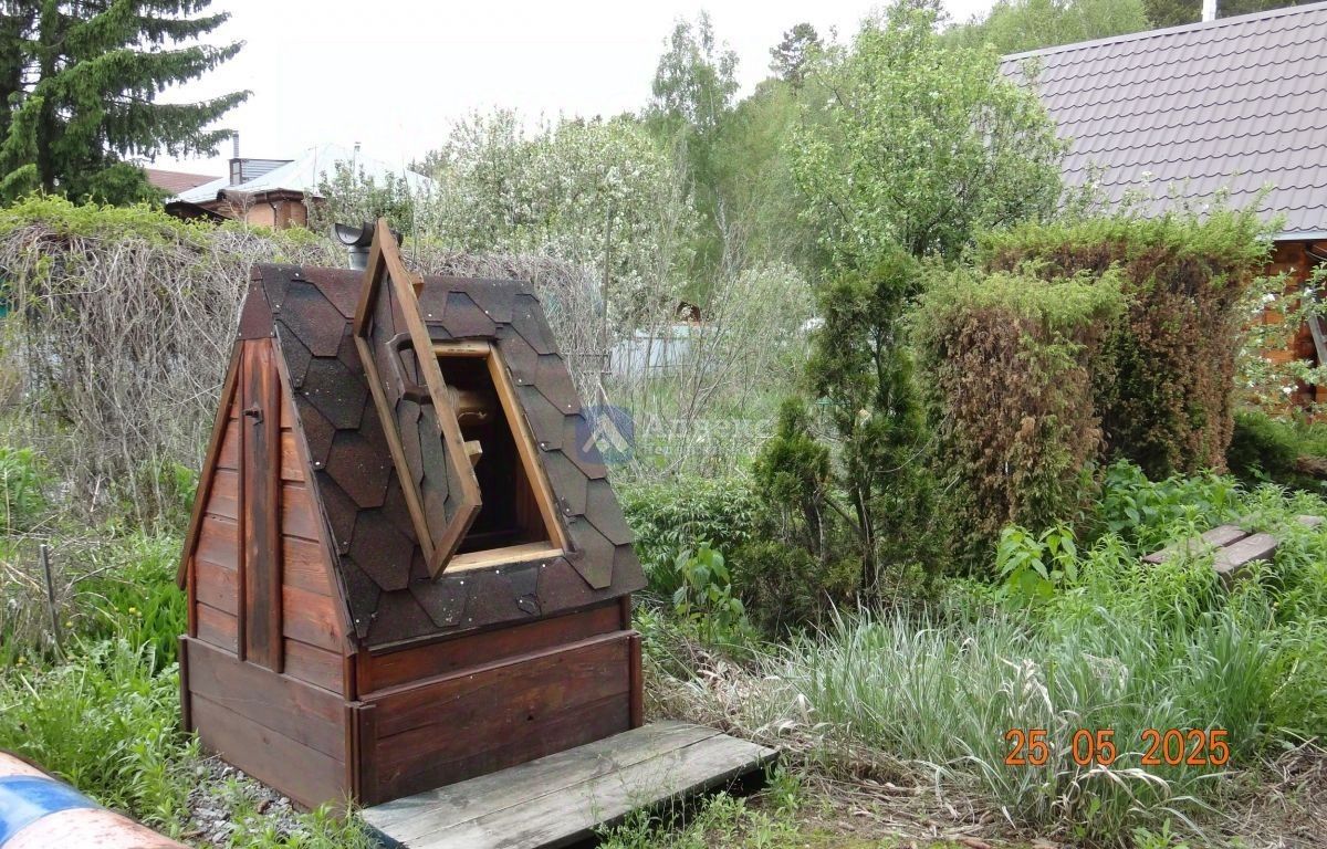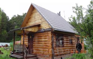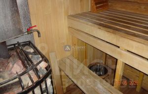 Бревенчатая баня с парилкой и комнатой отдыха, снаружи пристроен хозблок с дровяником и благоустроенным уличным санузлом (смонтирована подача воды и слив). На чердаке бани можно сушить травы, а можно обустроить жилую комнату.