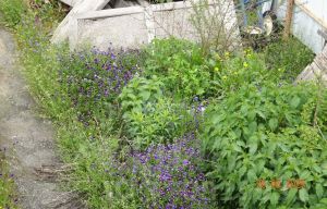 Плодовые кустарники, яблони, можжевельник, туя, ель, цветы-многолетники.
