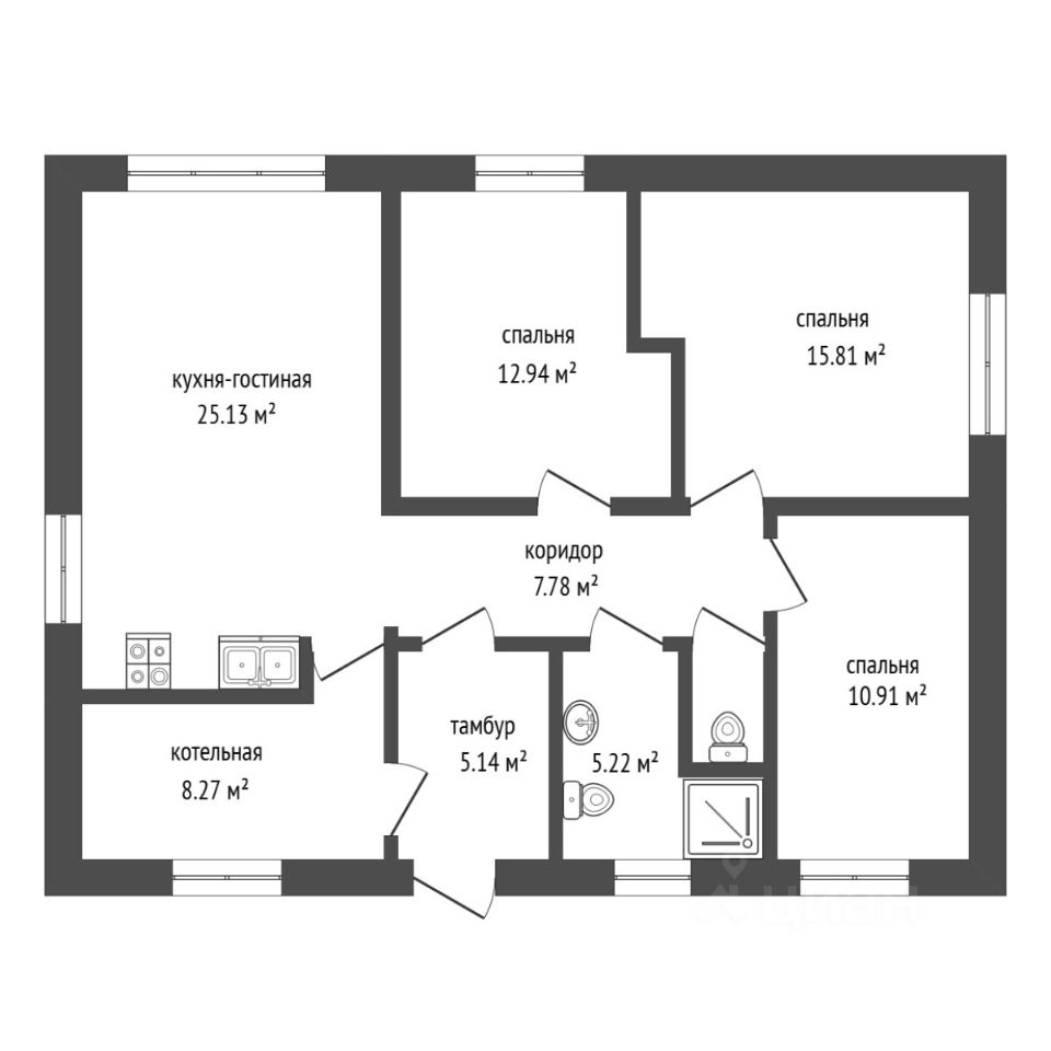 Три изолированные спальных комнаты правильной формы обеспечивают удобство и комфорт для всей семьи, а также отдельные помещения выделены под гардероб и котельную.