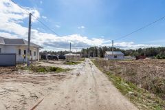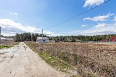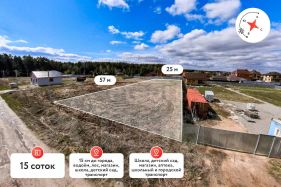 Без построек. Участок далеко от дороги, а значит далеко от выхлопных газов и шума. Рядом с участком находится лес. Участок в середине посёлка, на самом высоком месте. По весне и по осени сухо. Залегание воды 16-18 метров, поэтому можно смело строить цокольный этаж или делать погреб. Газ проходит рядом с участком. Также рядом стоит столб с возможностью подключения электричества.