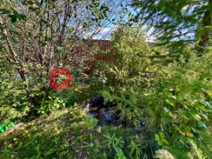 На участке разбит сад, много взрослых плодоносящих кустов и деревьев, есть теплица, небольшой пруд.