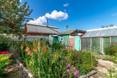 Участок 3,75 сотки, ухоженный и утопает в зелени, что создает атмосферу уюта и гармонии. Почва плодородная, все растет хорошо. Имеются все насаждения, много цветов. На территории расположены 2 теплицы, действующая баня из шпал, обшита досками. Есть колодец глубокий и всегда с водой. Имеется погреб-бак железный, овощи хранятся просто отлично.