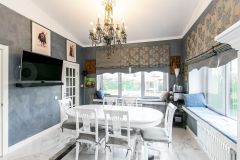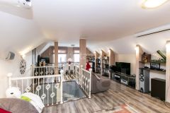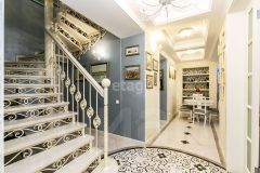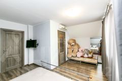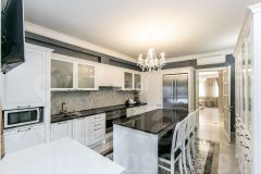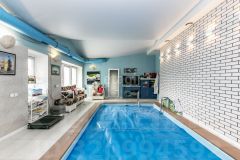 Дом оснащен спа-зоной с большим бассейном, оборудованным системой поддержания определенного микроклимата, что обеспечивает удобное обслуживание. Также есть летняя кухня с мангальной зоной и террасой. На втором этаже находятся четыре спальни. Третий этаж представляет собой изолированную спальню, большую зону для отдыха и отдельный санузел.