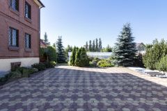 Есть капитальное овощехранилище, теплица, хоз. блок (можно содержать там птицу), накопительная емкость 3 м куб для автополива.Помимо гаража есть навес для авто, вольер для собаки, уличный душ. На улице расположен крытый бассейн, беседка. Во дворе уложена брусчатка.