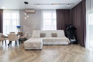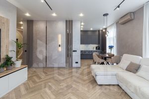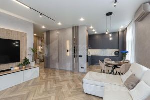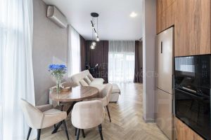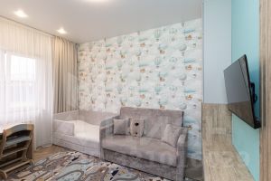 Дизайнерский ремонт, дом полностью меблирован — заехать можно сразу. Полы — кварцвинил; в санузле и прихожей — керамогранит. Электроотопление: тёплые полы радиаторы. Собственная скважина и переливной септик.