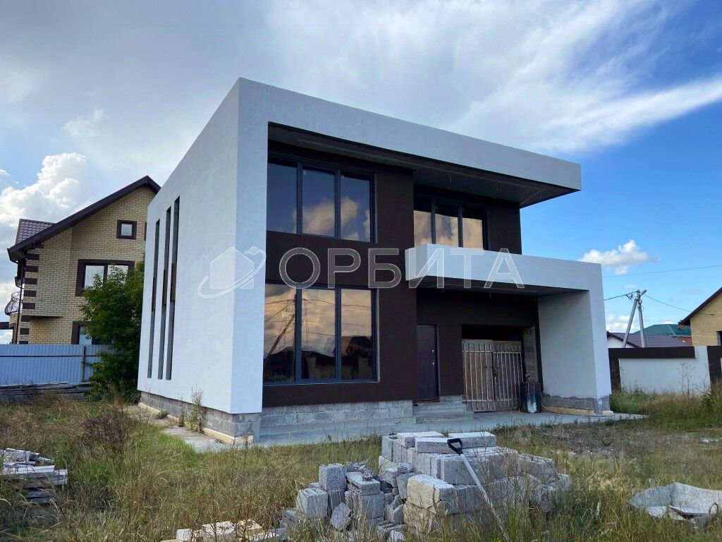 Готовый дом в стиле хай-тек по индивидуальному проекту в коттеджном посёлке Зелёные холмы.