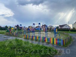 Большой угловой участок огорожен капитальным забором под стиль дома, подъезд по широкой асфальтированной улице. На участке также построена большая крытая терраса.
