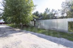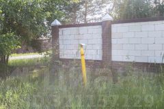 Участок огорожен капитальным кирпичным забором на ленточном фундаменте.