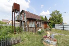 Главное строение — дом, пригодный для круглогодичного использования. Он требует косметического ремонта. В доме есть просторная веранда, а наличие печи создает уютную атмосферу в холодное время года. Инженерные коммуникации продуманы: проведено электричество, оборудован колодец с чистой водой и установлен бак для полива.