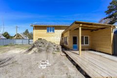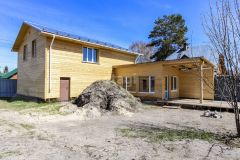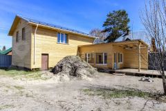 Дом 130 кв.м., первый этаж построен из кирпича на плите, второй этаж из бруса, утеплен и обшит вагонкой, свободная планировка.В доме электрическое отопление, разводка на первом этаже. Своя скважина.К дому пристроена летняя кухня, терраса. По улице газ.