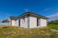 Просторная кухня-гостиная станет центром притяжения для всей семьи, а три светлые жилые комнаты с заниженным остеклением наполнят дом солнечным светом.