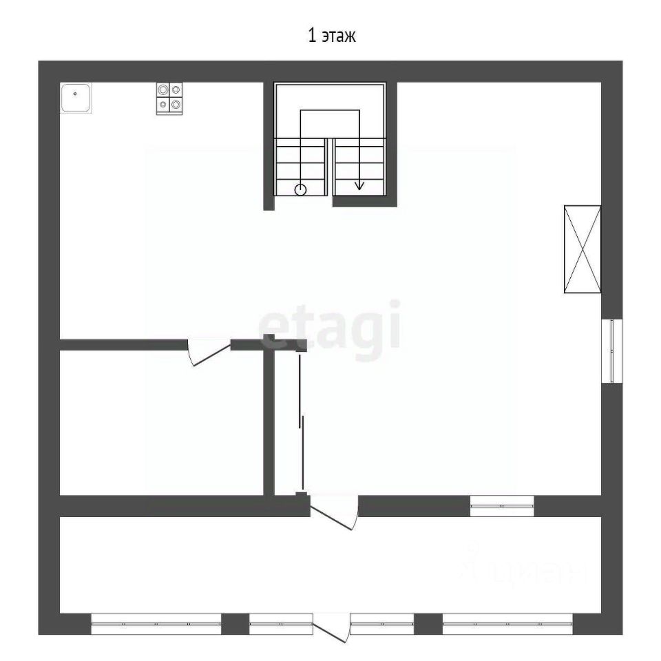 1-ый этаж : просторная гостиная с камином, отделка Травертин, уютная кухня, гостевой санузел.
