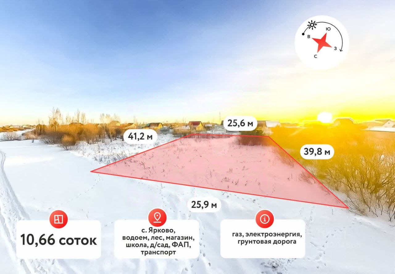Продается земельный участок площадью 10 соток в селе Ярково, Ярковского района Тюменской области. Участок расположен в новой жилой застройке с хорошим подъездом. Все необходимые коммуникации (электричество и газ) находятся по границе участка.